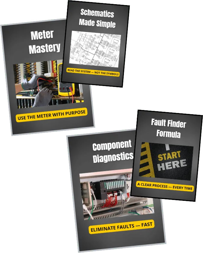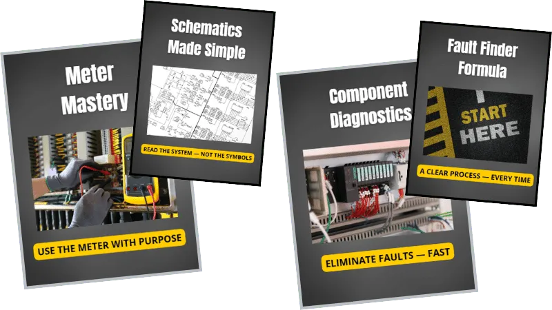 Know exactly where to start—every single time. No more freezing. No more panic. Just a clear, repeatable process that works on electrical, pneumatic, and PLC systems.
